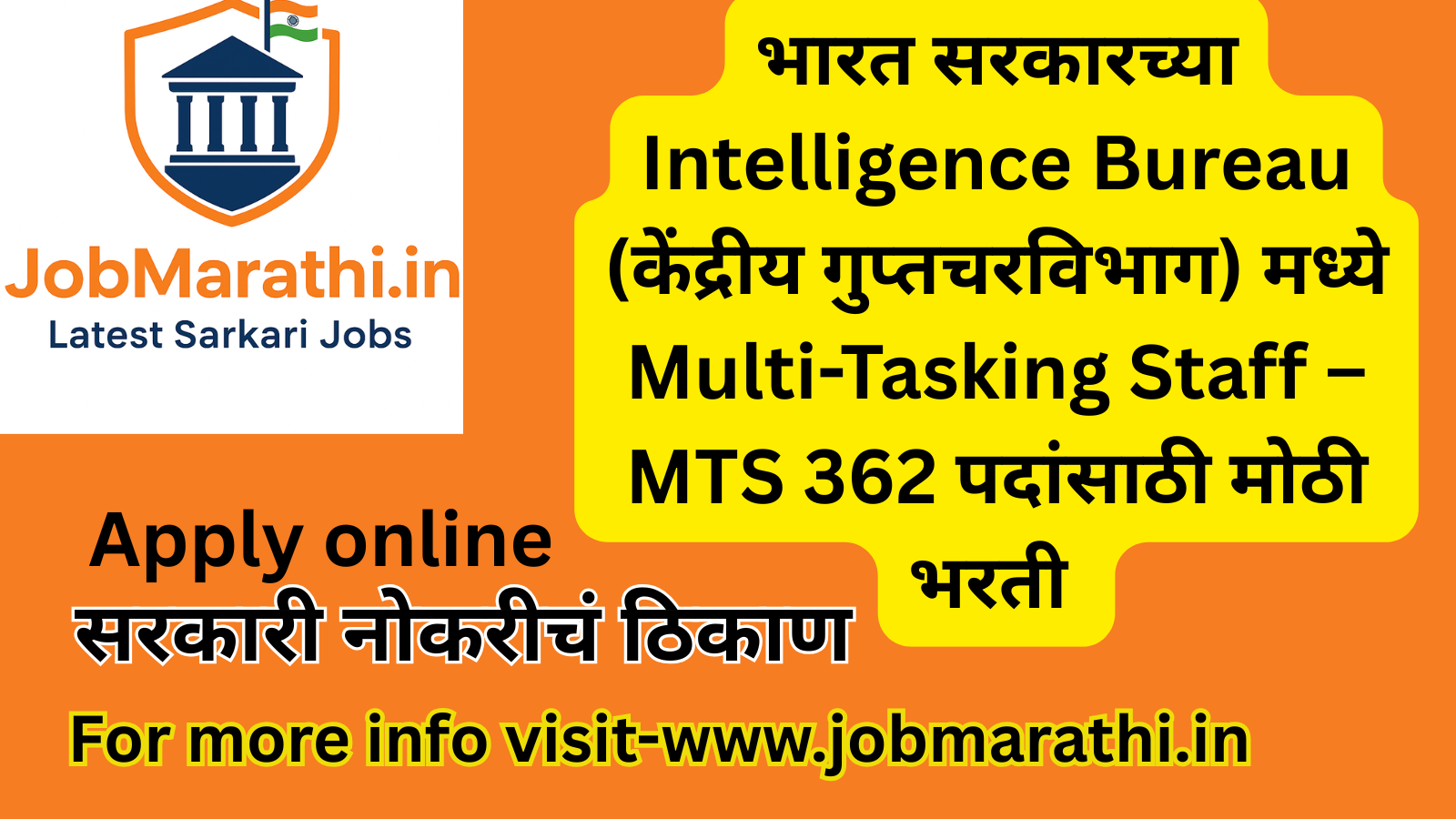 भारत सरकारच्या Intelligence Bureau (IB) मध्ये Multi-Tasking Staff – MTS पदांसाठी मोठी भरती जाहीर! देशसेवा करण्याची संधी आणि सुरक्षित भविष्याची हमी — असा दुहेरी फायदा मिळवण्याची उत्तम संधी. www.jobmarathi.in 🔥 भरतीचे ठळक मुद्दे (Highlights) 🎯 पदांची माहिती (Post Details) पद जागा पात्रता MTS (Multi-Tasking Staff) 362 10वी पास 🎓 शैक्षणिक पात्रता (Eligibility) 📅 महत्वाच्या तारखा … Read more