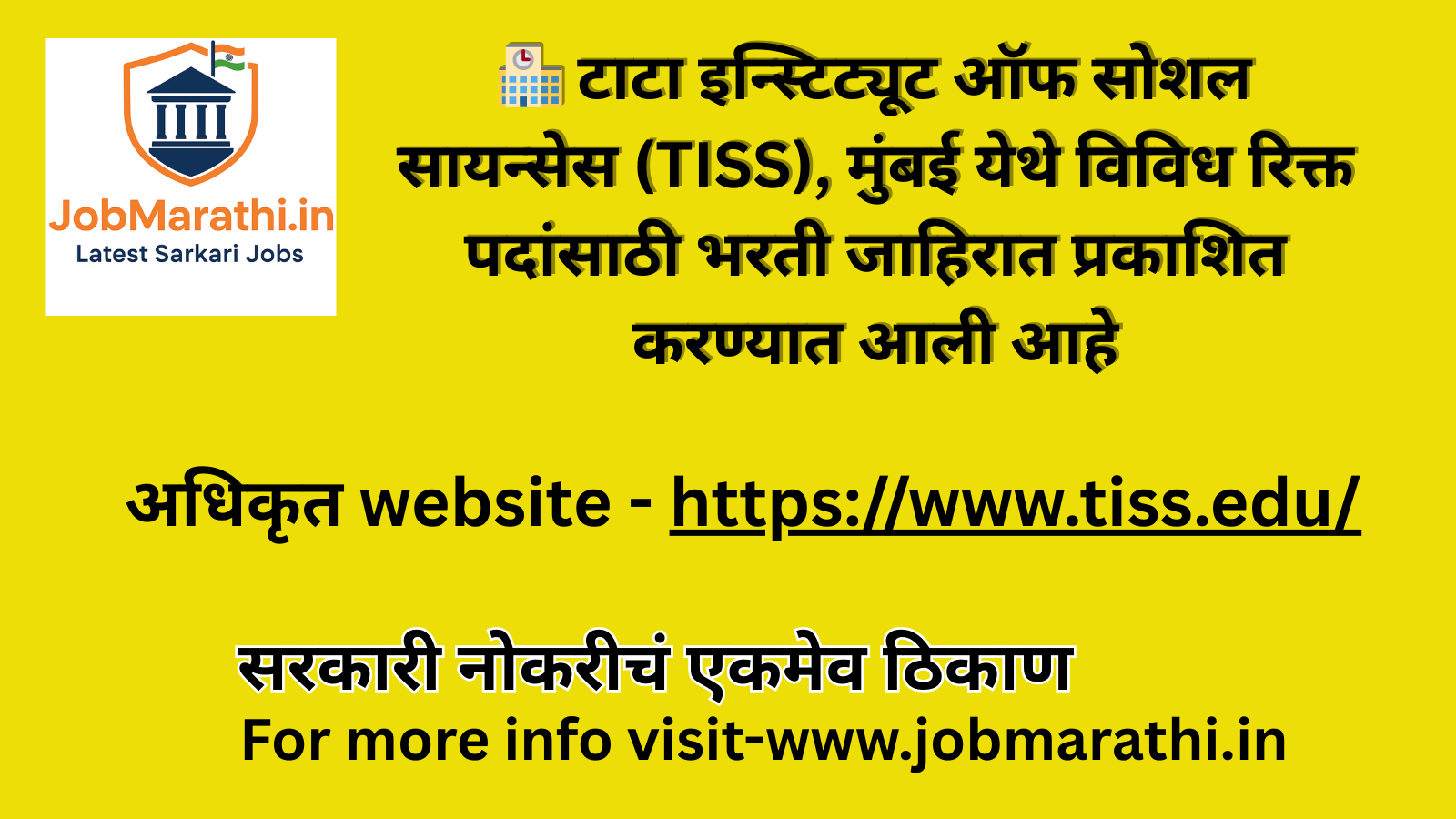 TISS मुंबई येथे रिक्त पदांकरिता भरती जाहिरात प्रकाशित; अर्ज सुरु!!! | TISS Mumbai Bharti 2025