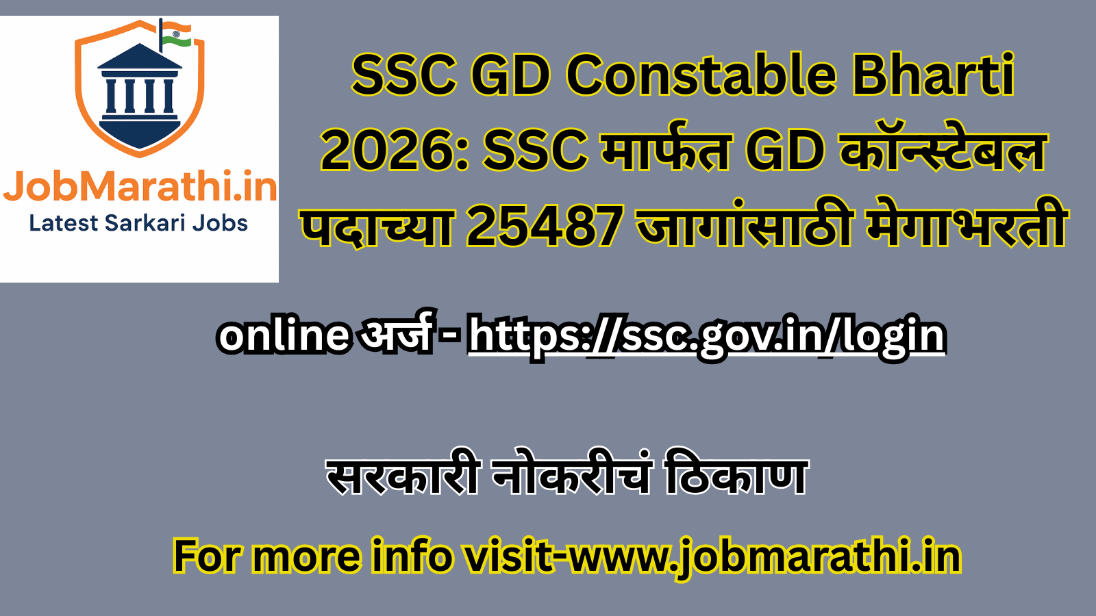 SSC GD Constable Bharti 2026: SSC मार्फत GD कॉन्स्टेबल पदाच्या 25487 जागांसाठी मेगाभरती
